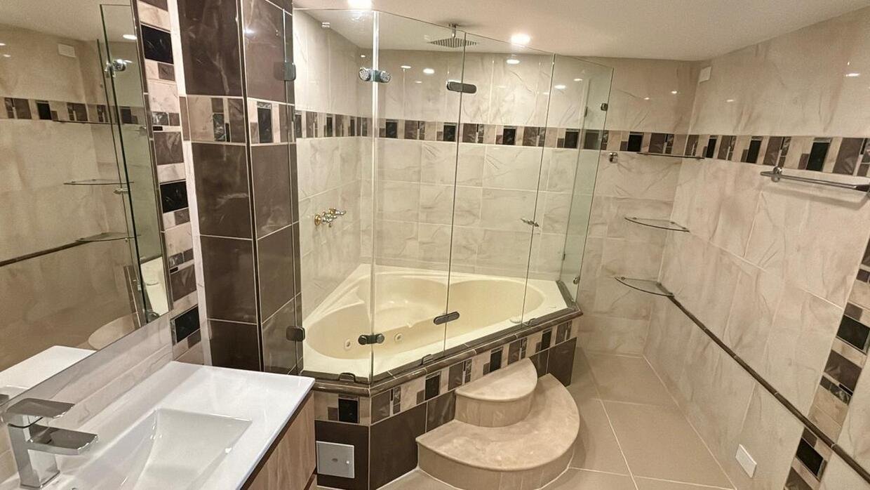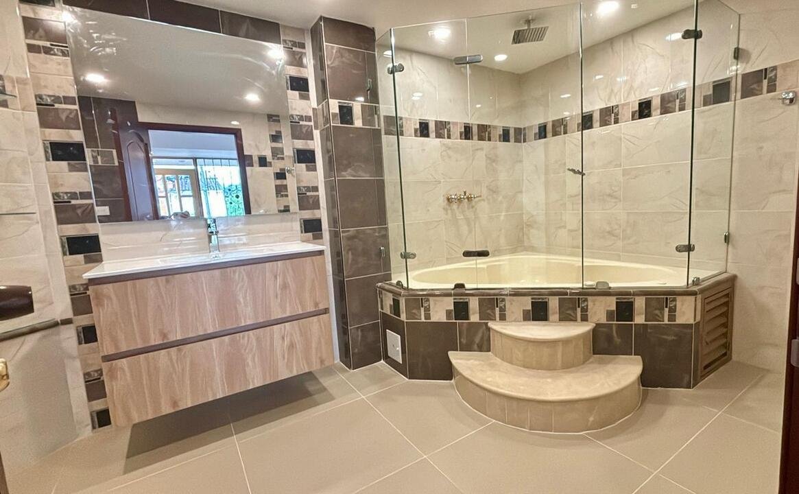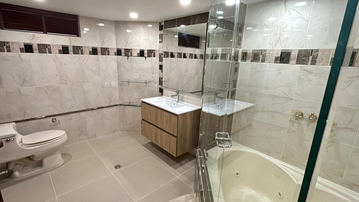 Alcoba principal con balcón, baño privado y Jacuzzi.