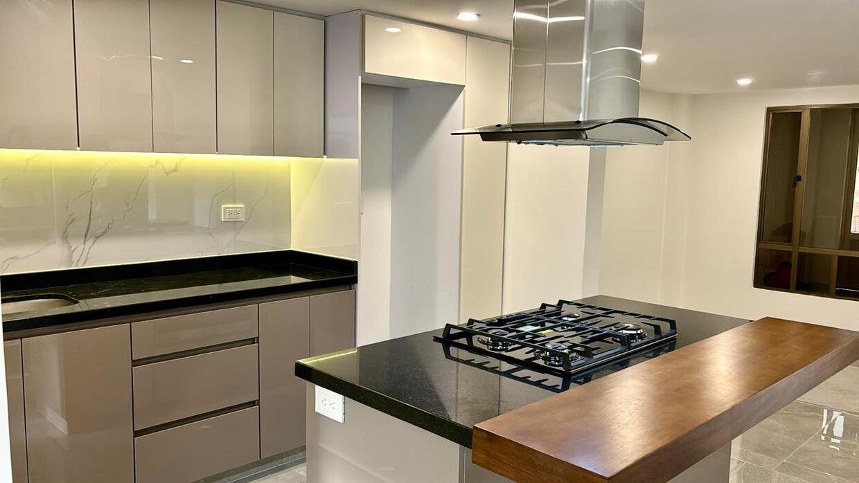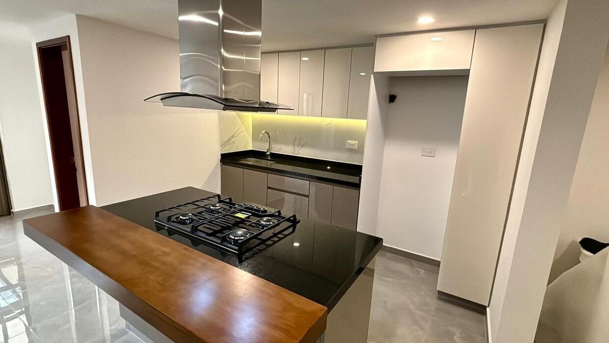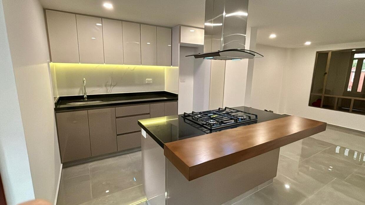 Cocina abierta con isla.